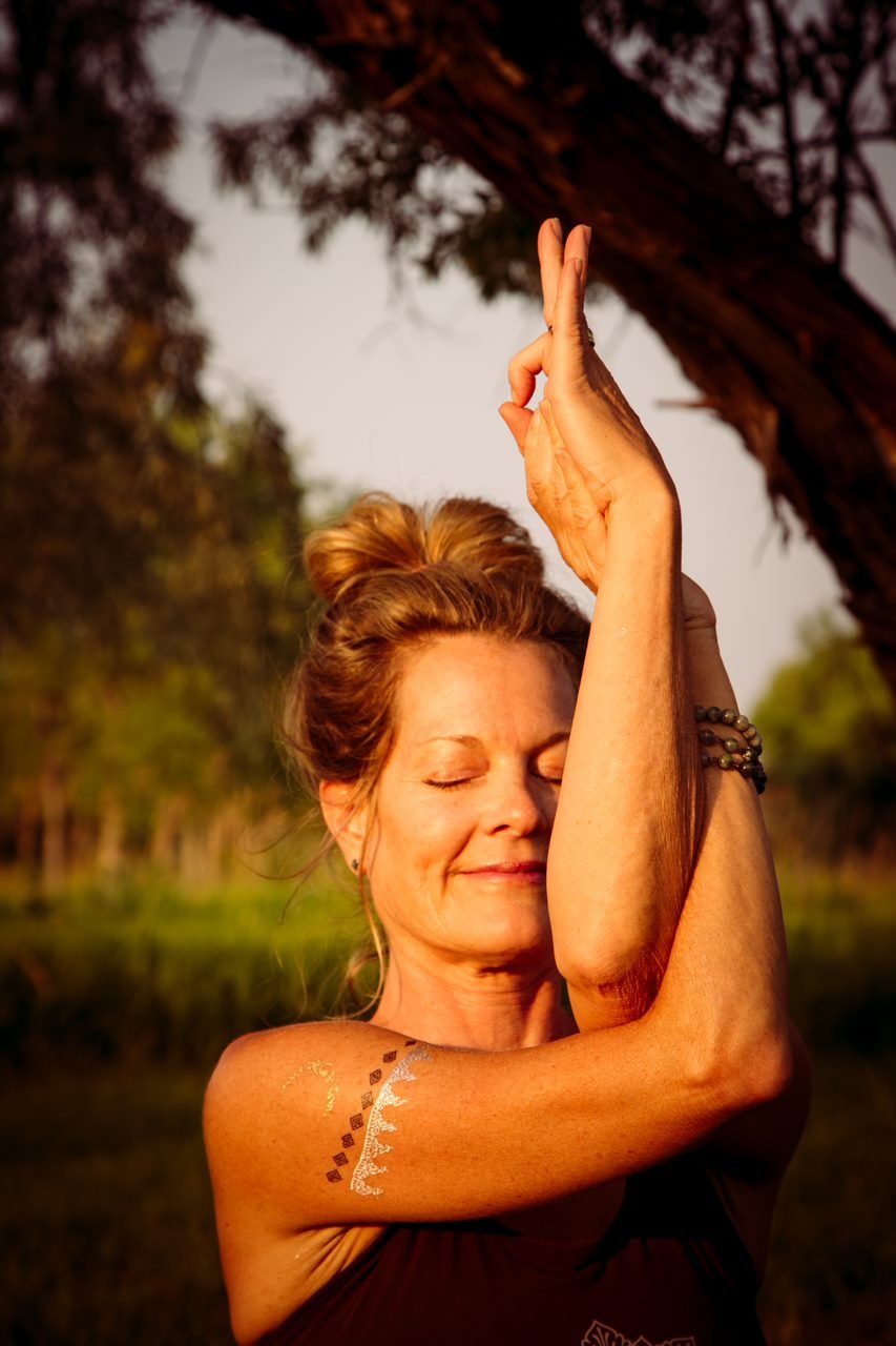 I live my yoga every day by consciously breathing in and out, lengthening my spine and connecting to the radiant light streaming in to the crown of my head. These simple rituals change the conditions that surround me (loved ones, community, fellow beings)...I also try to be radically responsible for what I am sending outward....steeped in the practice of keeping it high-vibe.